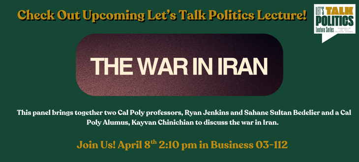 Check out our upcoming Let's Talk Politics Lecture on the war in Iran!